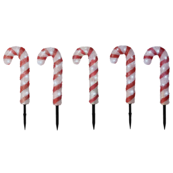Deze lichtgevende zuurstokken brengen vrolijkheid in de tuin. Deze set bestaat uit 5 zuurstokken die aan elkaar gekoppeld zijn en met 1 stekker aan te sluiten zijn. Dankzij hun rode en witte kleur passen ze perfect in een traditionele kerstsfeer! De acryl zuurstokken zijn voorzien van 80 LED sfeerlichtjes. Je kan er dus zowel overdag als 's nachts van genieten. Verspreid ze in de tuin of zet ze mooi langs het pad. Ze zijn een echte blikvanger!