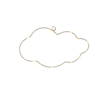 De metalen wolk is voorzien van 19 warm witte led lampjes. Rondom het dunne metalen frame zitten de kleine lampjes op een bijna onzichtbare draad. Overdag is de wolk heel decoratief, en in de avond, als de 19 warm witte lampjes branden, is het silhouet duidelijk zichtbaar. De wolk werkt op batterijen, dat is handig, want je kan de wolk met verlichting overal plaatsen zonder afhankelijk te zijn van een stopcontact.