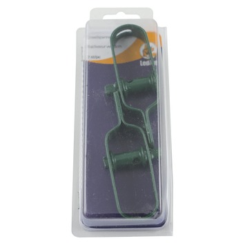 Groene metalen draadspanner met lengte 8cm. Poedergelakt op verzinking. Geschikt om een draad op spanning te brengen en houden. Door de verzinking wordt corrosie voorkomen en de levensduur van de draadspanner verlengd. Set van 2 stuks in blister.