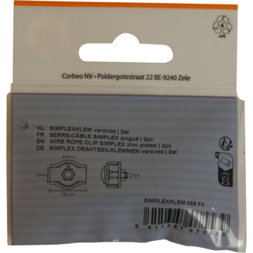 Laat toe om een draad doeltreffend te blokkeren en vast te klemmen met zekerheid. De draadklem maakt het mogelijk om snel en eenvoudig een wegneembare verbinding te creëren. Geschikt voor touw/kabel van 3mm. Door de verzinking wordt corrosie voorkomen en de levensduur van de draadklem verlengd. Set van 2 stuks in blister.