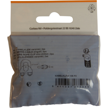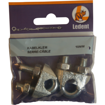 Laat toe om een draad doeltreffend te blokkeren en vast te klemmen met zekerheid. De draadklem maakt het mogelijk om snel en eenvoudig een wegneembare verbinding te creëren. Geschikt voor touw/kabel van 10mm. Door de verzinking wordt corrosie voorkomen en de levensduur van de draadklem verlengd. Set van 2 stuks in blister.