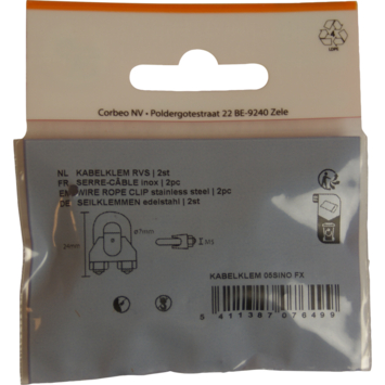 Laat toe om een draad doeltreffend te blokkeren en vast te klemmen met zekerheid. De draadklem maakt het mogelijk om snel en eenvoudig een wegneembare verbinding te creëren. Geschikt voor touw/kabel van 5mm. Door het gebruik van roestvast staal is deze staaldraadklem volledig beschermd tegen roestvorming waardoor hij in goede staat blijft en een lange levensduur gegarandeerd is. Set van 2 stuks in blister.