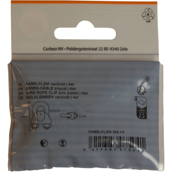 Laat toe om een draad doeltreffend te blokkeren en vast te klemmen met zekerheid. De draadklem maakt het mogelijk om snel en eenvoudig een wegneembare verbinding te creëren. Geschikt voor touw/kabel van 5mm. Door de verzinking wordt corrosie voorkomen en de levensduur van de draadklem verlengd. Set van 2 stuks in blister.