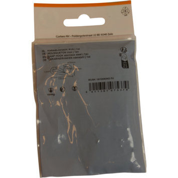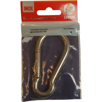 Deze karabijnhaak heeft een lengte van 100mm en een dikte van 10mm. Een karabijnhaak is dankzij het scharnierende deel geschikt om snel en eenvoudig dingen met elkaar te verbinden. Karabijnhaken komen goed van pas als u iets moet zekeren of op een eenvoudige manier aan elkaar moet bevestigen. Door het gebruik van roestvast staal is deze karabijnhaak volledig beschermd tegen roestvorming waardoor hij in goede staat blijft en een lange levensduur gegarandeerd is. De karabijnhaak is per stuk verpakt in een blister.