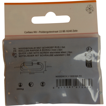 Ledent kettingsluiting 5 mm met moer rvs (2 stuks). De kettingsluiting is gemaakt van rvs en heeft een maximaal draagvermogen van 290kg.