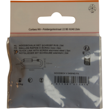 Ledent kettingsluiting en moer rvs 4x32x5,5 mm (2 stuks). De kettingsluiting is gemaakt van rvs en heeft een maximaal draagvermogen van 220kg.
