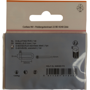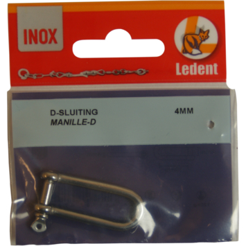 Ledent noodschakel D-sluiting rvs 4 mm. De noodschakel is gemaakt van rvs en uitermate geschikt als (tijdelijke) vervanger van een gebroken schakel in een ketting. De schakel heeft een maximaal draagvermogen van 220kg.