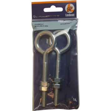 Ledent oogbout met moer verzinkt 10x80 mm 2 stuks