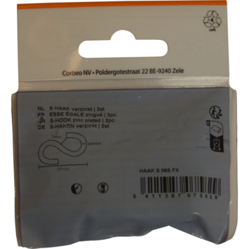 Open S-haken zijn handig om allerlei voorwerpen aan op te hangen, zoals keukengerei of gereedschap. Deze verzinkte S-haken zijn 6mm dik en 5,5cm lang. Ze zijn per 2 stuks verpakt in een blister.