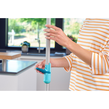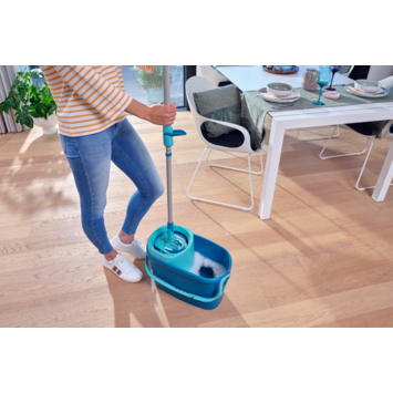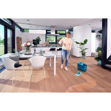 Met de Leifheit Clean Twist Ergo Mobiel dweilset maak je schoonmaken een fluitje van een cent. Dit slimme dweilsysteem is geschikt voor alle soorten vloeren, of je nu tegels, hout, laminaat of PVC hebt. De verstelbare telescoopsteel past zich aan jouw lengte aan, van 109 tot 140 cm, zodat je comfortabel kunt werken. Dankzij het unieke rotatiemechanisme centrifugeer je de mop zonder te bukken of je handen in vuil water te steken. De 360° draaibare kop helpt je moeiteloos in elke hoek en onder meubels. De microvezelmop pakt vuil en vocht snel op, zonder dat je vloer nat blijft. Na gebruik is de mop eenvoudig te reinigen. Maak het jezelf gemakkelijk en kies voor deze vloerwisser.