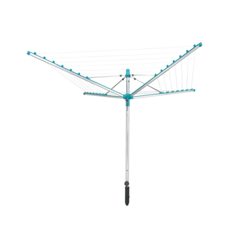 De Linomatic 400 Easy droogmolen biedt alles wat je nodig hebt: de beproefde Leifheit-technologie, een fris en luchtig ontwerp én een stijlvolle turquoise uitstraling. Wanneer de droogmolen gesloten is, worden de waslijnen automatisch opgeborgen in de draagarmen. Zo blijven ze schoon en beschermd tegen vuil – want een schone lijn hoort bij een schone was.