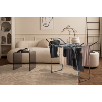 De Pegasus 150 Solid Slim van Leifheit combineert tijdloze kwaliteit en stabiliteit met een stijlvol zwart-antraciet design. Een betrouwbaar droogrek dat zowel functioneel als modern is.