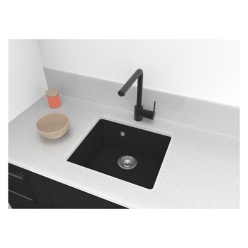 Levica Spoelbak Mika 50x44 cm zwart is eencomposiet zwart gespikkelde grafietenkeukenspoelbak.