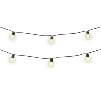 Deze decoratieve verlichting aan een snoer is een echte eyecatcher. De geïntegreerde LED lampjes hebben een originele vorm. De lampjes zijn verspreid over 5,7 meter. Het lichtsnoer is voorzien van 30 lichtbulbs die om de 30 cm op het snoer zijn geplaatst. Met de bijgeleverde batterij heb je in een mum van tijd jouw terras of balkon omgetoverd.