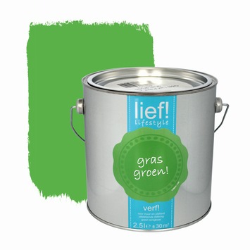 De Lief! muurverf grasgroen 2,5 l geeft de kinderkamer een frisse en plezierige uitstraling. De verf is met zorg en aandacht speciaal voor jou samengesteld. De verf is een watergedragen muurverf en is daardoor reukarm en sneldrogend. Ook is de verf minder belastend voor het milieu. Met deze verf wordt het verven een fluitje van een cent. Dus jij blij, en je kind blij met zo'n leuke kleur op de muur. Maak de kinderkamer extra leuk door deze muurverf te combineren met andere producten van Lief!. Het blik bevat 2,5 liter grasgroene verf, dit is goed voor een oppervlakte van zo'n 30 vierkante meter.