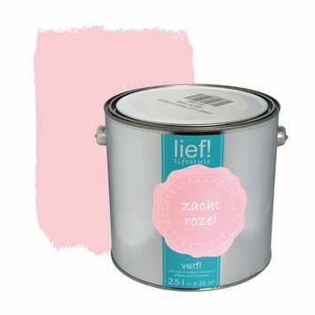 De Lief! muurverf zachtroze 2,5 l geeft de kinderkamer een frisse en plezierige uitstraling. De verf is met zorg en aandacht speciaal voor jou samengesteld. De verf is een watergedragen muurverf en is daardoor reukarm en sneldrogend. Ook is de verf minder belastend voor het milieu. Met deze verf wordt het verven een fluitje van een cent. Dus jij blij, en je kind blij met zo'n leuke kleur op de muur. Maak de kinderkamer extra leuk door deze muurverf te combineren met andere producten van Lief!. Het blik bevat 2,5 liter zachtroze verf, dit is goed voor een oppervlakte van zo'n 30 vierkante meter.