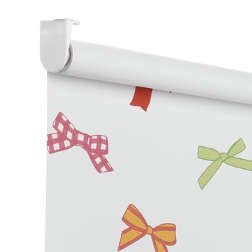 Het Lief! rolgordijn strikjes wit (2407) 150 x 190 cm met strikjes geeft elke ruimte een kleurrijke uitstraling. Door het gebruik van vrolijke kleuren en materialen, heeft het rolgordijn een eigentijdse karakter. Naast het decoratieve aspect, is het rolgordijn functioneel in gebruik. Daarnaast zorgt de stof voor een verduisterend effect en dat maakt het product uitermate geschikt voor slaap-en kinderkamers. Het rolgordijn is eenvoudig zelf in de breedte in te korten en wordt compleet geleverd met montage-instructie en -materialen. Door het decoratieve, functionele karakter en de eenvoudige montage, is het lief! rolgordijn ideaal als vrolijke, eigentijdse raamdecoratie.