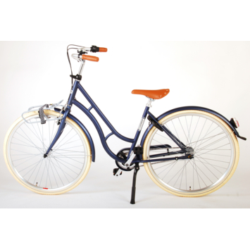 Volare Lifestyle tienerfiets 48 centimeter. Deze fiets, onderdeel van de prachtige Volare Lifestyle range, past perfect in de lifestyle van de hedendaagse tiener. Het moderne stalen frame van deze fiets heeft een toffe jeans blauwe kleur en op de voorbagagedrager kunnen alle spullen worden meegenomen. De handvaten zijn voor extra comfort gemaakt van Kraton, een heerlijk zacht rubber. Om vaart te maken heeft de fiets Shimano Nexus 3 versnellingen en om vaart te minderen beschikt de fiets over een handrem en een terugtraprem. Verder beschikt de fiets over een fietsbel en een fietsslot. De mooi gevormde spatborden houden al het opspattende vuil en vocht tegen. Om de fiets te parkeren heeft hij een fietsstandaard. Voor de veiligheid heeft de fiets verlichting aan de voorkant en aan de achterkant. De 28 inch banden en het frame van 48 centimeter hoog maken de fiets geschikt voor dames vanaf 12 jaar oud met een binnenbeenlengte tussen de 78 en 95 centimeter. De voordrager is afneembaar.