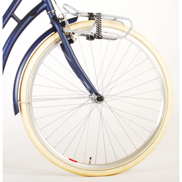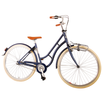 Volare Lifestyle tienerfiets 51 centimeter. Deze fiets, onderdeel van de prachtige Volare Lifestyle range, past perfect in de lifestyle van de hedendaagse tiener. Het moderne stalen frame van deze fiets heeft een toffe jeans blauwe kleur en op de voorbagagedrager kunnen alle spullen worden meegenomen. De handvaten zijn voor extra comfort gemaakt van Kraton, een heerlijk zacht rubber. Om vaart te maken heeft de fiets Shimano Nexus 3 versnellingen en om vaart te minderen beschikt de fiets over een handrem en een terugtraprem. Verder beschikt de fiets over een fietsbel en een fietsslot. De mooi gevormde spatborden houden al het opspattende vuil en vocht tegen. Om de fiets te parkeren heeft hij een fietsstandaard. Voor de veiligheid heeft de fiets verlichting aan de voorkant en aan de achterkant. De 28 inch banden en het frame van 51 centimeter hoog maken de fiets geschikt voor dames vanaf 12 jaar oud met een binnenbeenlengte tussen de 84 en 101 centimeter. De voordrager is afneembaar.
