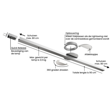 De Lightswing is geschikt voor vrijwel elke hanglamp (max. 3,5 kg per kant)