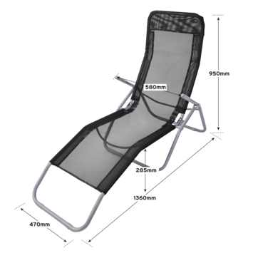 Ligstoel tuin zwart 136 x 58 x 95 cm