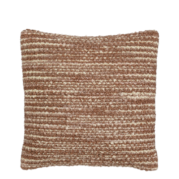 Geef je bank, fauteuil of bed een warm accent met dit kussen in bruin lijnmotief. Het kussen is gemaakt van polyester en heeft een gestreept dessin in verschillende bruintinten, waardoor het een rustige en veelzijdige uitstraling heeft. Dankzij het vierkante formaat is het makkelijk te combineren met andere kussens in neutrale kleuren of met verschillende structuren. Met een afmeting van L45 x B45 x H10 cm is dit kussen een fijne toevoeging voor extra sfeer en comfort in je interieur.