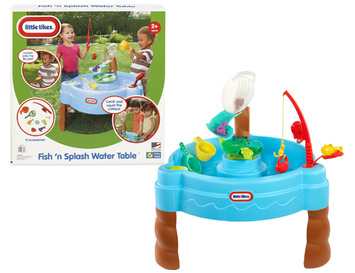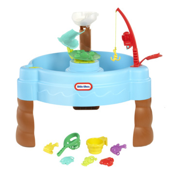Met deze Little Tikes kunststof vis- en spetterwaterspeeltafel kunnen kleine vissers vissen en andere waterdieren vangen. De kinderen kunnen naar hartelust spelen met water door de waterspeeltafel met een gieter te vullen en vooral te spetteren. Vul de vissenkom met water en zie hoe het water omlaag klettert of probeer de beestjes op het lelieblad terecht te laten komen. Deze waterspeeltafel, afm. ((Øxh): 74x80 cm, wordt compleet geleverd met 10 accessoires die voor heel veel waterpret zorgen. Vanaf 18 maanden.