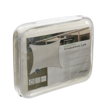 Met de schaduwdoeken van Livin? outdoor kun buiten en in de tuin plaatsen gericht beschermen tegen de zon. Een schaduwdoek houdt namelijk tot wel 95% van de UV stralen tegen. Vooral als er gebrek aan ruimte in uw tuin is, kan dit een mooie oplossing zijn. Naast de functionaliteiten kan het een mooie en creatieve uitstraling geven. Behalve in de tuin kan een schaduwdoek ook gebruikt worden op een (dak)terras of balkon. Bijkomende voordelen: het scheelt gesleep met parasols en het schaduwdoek kan goed tegen weer en wind. Het doek is eenvoudig te bevestigen aan een paal of muur en daarnaast gemakkelijk te reinigen. Dit schaduwdoek heeft als extra pluspunt dat deze waterdicht is en dus behalve zon ook regen tegenhoudt. De afmetingen van dit schaduwdoek zijn 360x360 cm en de vorm is vierkant.