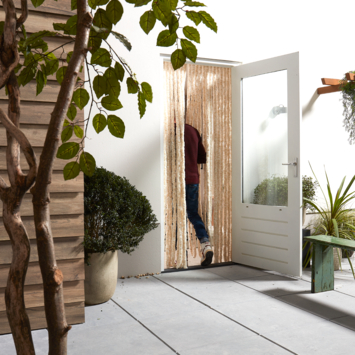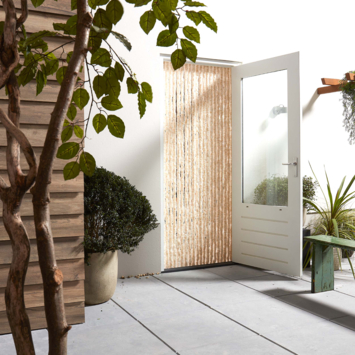 Laat je regelmatig jouw buitendeur open om wat frisse lucht binnen te laten? Het Livn deurgordijn Chenille is ontworpen om te voorkomen dat insecten en ander ongedierte onopgemerkt naar binnen glippen. Je kunt dit vliegengordijn eenvoudig zelf op maat maken, zowel in hoogte als in breedte. Het zachte kattenstaart gordijn maakt het gemakkelijk om er doorheen te lopen, zelfs wanneer je je handen vol hebt. Hierdoor is het ook een ideale oplossing voor huishoudens met kinderen en huisdieren. De rail van het vliegengordijn is vervaardigd uit kunststof en de strengen zijn beige van kleur, gemaakt van polypropyleen.