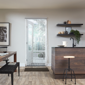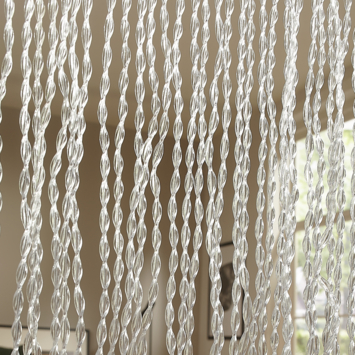 Ben je gewend om regelmatig de achterdeur te openen om wat frisse lucht binnen te laten? Maar vaak sluipt er meer dan alleen lucht naar binnen - insecten zien ook hun kans. Livn deurgordijn Twinkle biedt de oplossing! Dit gordijn is samengesteld uit een stevige aluminium rail en sierlijk gedraaide PVC slierten. Het is eenvoudig om erdoorheen te lopen, zelfs met je handen vol. Ideaal voor zowel kinderen als huisdieren. Een subtiel wit draadje is verweven in het midden van de PVC slierten, waardoor het deurgordijn een vrolijke toevoeging is aan je interieur. Dankzij de transparante slierten komt er ook voldoende zonlicht door de deuropening.