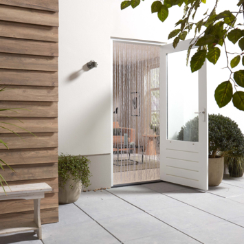 Ben je gewend om regelmatig de achterdeur te openen om wat frisse lucht binnen te laten? Maar vaak sluipt er meer dan alleen lucht naar binnen - insecten zien ook hun kans. Livn deurgordijn Twinkle biedt de oplossing! Dit gordijn is samengesteld uit een stevige aluminium rail en sierlijk gedraaide PVC slierten. Het is eenvoudig om erdoorheen te lopen, zelfs met je handen vol. Ideaal voor zowel kinderen als huisdieren. Een subtiel zwart draadje is verweven in het midden van de PVC slierten, waardoor het deurgordijn een vrolijke toevoeging is aan je interieur. Dankzij de transparante slierten komt er ook voldoende zonlicht door de deuropening.