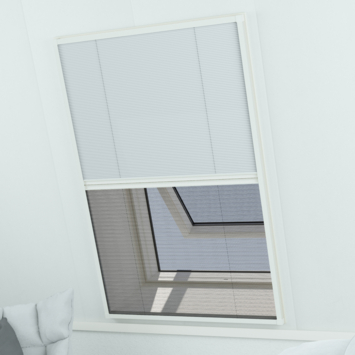 Met de Livn Duoplisséhor Plus houd je insecten buiten en verduister je tegelijkertijd de kamer. Deze multifunctionele oplossing, speciaal ontworpen voor dakramen, bestaat uit witte aluminium profielen.