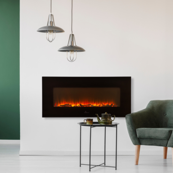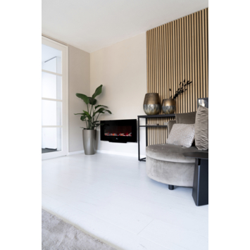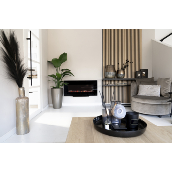 De Livn hanghaard Brixham is een rechte zwarte hanghaard voorzien van realistisch 3D LED-vlambeeld, backlight met 14 kleuropties en 2 warmtestanden (1000 – 2000 W). De heater zit onder de haard verwerkt waardoor de haard ook onder een televisie gemonteerd kan worden. De haard wordt geleverd inclusief afstandsbediening. Daarnaast wordt de haard geleverd met houtblokken en kiezelstenen. Je kiest zelf of je voorkeur naar houtblokken of kiezelstenen uitgaat. Een brede elektrische haard met een prachtig tijdloos en modern design. Deze haard is de opvolger van de Brighton hanghaard en heeft t.o.v. zijn voorganger een nog realistischer vlambeeld en vlambed, backlight met 14 kleuropties en een digitaal display verwerkt in het de haard, welke tijdelijk verschijnt bij bediening met de afstandsbediening.