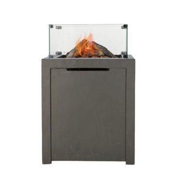 Stijlvolle buitenhaard voor optimaal comfort. Deze luxe buitenhaard, verwarmd jou terras op koele zomeravonden. Incl. keramische blokken, lavastenen en beschermhoes. Het enige wat de consument nog moet aanschaffen is de gasfles. Gasflessen met een inhoud t/m 5 kg kunnen in het model worden geplaatst.Gasflessen tot maximaal 46 cm hoogte passen onder de haard. Ook verkrijgbaar in betonlook.