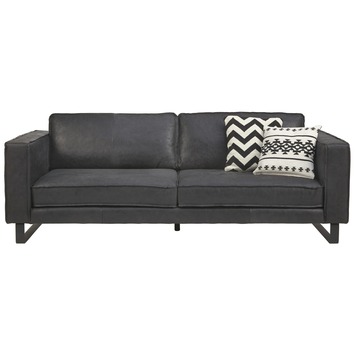De Long Island 2,5-zits bank leder zwart is de moderne bank om lekker op te genieten met een goed boek of voor de televisie. Dat is het ultieme moment van thuiskomen. Maar dat ultieme moment kan natuurlijk alleen wanneer je heerlijk kan zitten of liggen op een comfortabele bank! Je bent straks niet meer van deze bank af te slaan. De bank is bekleed met oersterk geborsteld pilotenleder (rundsleder) die iets ruw aanvoelt, met een modieuze opengewerkte stiknaad. Het zwart leder in combinatie met de stoere, zwart gemoffelde metalen sledepoten maken van de bank een eyecatcher in elk interieur.
