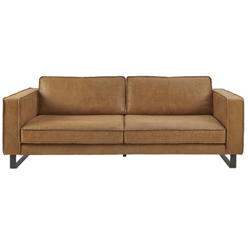 De Long Island 4-zits bank leder cognac is de moderne bank om lekker op te genieten met een goed boek of voor de televisie. Dat is het ultieme moment van thuiskomen. Maar dat ultieme moment kan natuurlijk alleen wanneer je heerlijk kan zitten of liggen op een comfortabele bank! Je bent straks niet meer van deze bank af te slaan. De bank is bekleed met oersterk geborsteld pilotenleder (rundsleder) die iets ruw aanvoelt, met een modieuze opengewerkte stiknaad. Het cognac leder in combinatie met de stoere, zwart gemoffelde metalen sledepoten maken van de bank een eyecatcher in elk interieur.