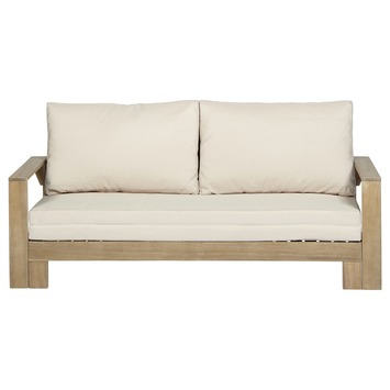 De loungebank Evora is een comfortabele en sfeervolle 3-zits loungebank voor je tuin. In deze bank kun je niet alleen comfortabel zitten, je kunt het onderstel uitschuiven waardoor je een groot ligbed creërt. Loungebank Evora is geschikt voor drie personen en is inclusief ecru kleurige kussenset. Omdat hout een natuur product is gaat het na verloop van tijd leven. Alle houten tuinmeubelen zijn voor behandeld met een olie laag, na verloopt van tijd kunnen er scheurtjes en verkleuring ontstaan. Met de juiste behandeling blijft het hout lang mooi van kleur.