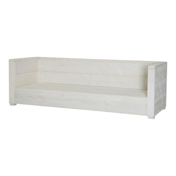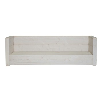 Maak je buitenruimte compleet met de loungebank Hava in witte steigerhout. Deze bank is ontworpen voor langdurig gebruik dankzij de bescherming van het gegronde steigerhout. De bank biedt voldoende ruimte voor 3 personen om heerlijk te ontspannen.