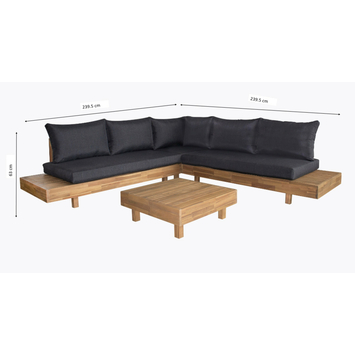 De Amber loungeset is geschikt voor 4 personen en is 3-delig en bestaat uit een bank recht en een bank links en een salon tafel. De set is gemaakt van hoogwaardig Acaciahout, waardoor het een tijdloze uitstraling krijgt. Met de comfortabele kussens in de kleur antraciet krijgt deze set een stoere eigentijdse look.