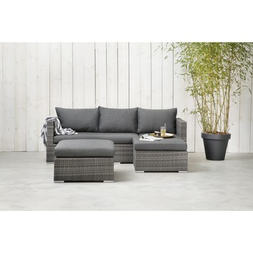 De Loungeset Avila Chaisse Longue antraciet is een royale moderne loungeset uit de Pure Collection. De loungeset is gemaakt van gemêleerd antraciet wicker en heeft daardoor een natuurlijke uitstraling. De rustige kleurencombinatie van antraciet wicker en de grijze kussens maakt dat deze set in vrijwel elke tuin kan prijken. De loungeset is royaal qua formaat en voorzien van comfortabele zit- en rugkussens. Daardoor is heerlijk relaxen gegarandeerd. Om de kussens netjes te houden kun je deze opbergen in de opbergbox Avila, die naadloos aansluit op de loungebank.