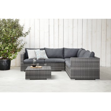 De Loungeset Avila hoek antraciet is een stijlvolle loungeset uit de Pure Collection. De loungeset is gemaakt van gemêleerd antraciet wicker en heeft daardoor een natuurlijke uitstraling. De rustige kleurencombinatie van antraciet wicker en de grijze kussens maakt dat deze set goed staat in elke tuin. De loungeset is royaal qua formaat en voorzien van comfortabele zit- en rugkussens met met een optimaal ontspannen gevoel als gevolg. Om je kussens netjes te houden kun je ze opbergen in de opbergbox Avila. Deze sluit perfect bij op de loungeset.