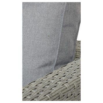 De loungeset Casabao is een royale moderne loungeset uit de Pure Collection. De loungeset is gemaakt van dubbel halfrond grijs kunststof wicker (vlechtwerk) en bestaat uit een hoekbank en een salontafel. Het ideale van wicker is dat het makkelijk reinigbaar is. De set is uitgevoerd met luxe dikke grijze kussens. De stof van de kussens is waterafstotend en UV bestendig waardoor de kleur van de kussens lang behouden blijft. De vierkante salontafel is met een zitkussen eventueel ook te gebruiken als een hocker.