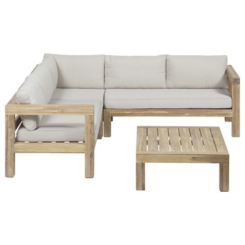 De Loungeset Cecina is een prachtige set waar je lekker in kan loungen. De set heeft een robuuste en stoere uitstraling. Door de uitstraling van het grove FSC acaciahout is het een echte eyecatcher op jouw terras of in de tuin. De loungeset Curinga heeft heerlijk comfortabele kussens. De kussens zijn waterafstotend en UV bestendig waardoor de kleur langer behouden blijft. Omdat hout een natuur product is gaat het na verloop van tijd leven. Alle houten tuinmeubelen zijn voor behandeld met een olie laag, na verloopt van tijd kunnen er scheurtjes en verkleuring ontstaan. Met de juiste behandeling blijft het hout lang mooi van kleur.