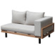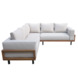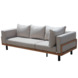 Aluminium houtlook onderstel. De bank en kussens zijn gemaakt van stof.