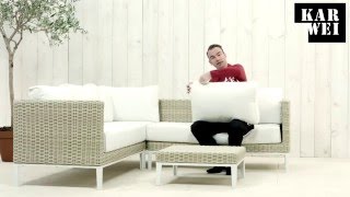 De Loungeset Ibiza heeft een frisse, luxe en moderne uitstraling. De loungestoel bestaat uit een aluminium onderstel en heeft een strak design. De Loungeset Ibiza zorgt voor een sfeervolle uitstraling van jouw tuin of terras. De loungeset is voorzien van comfortabele zit- en rugkussens, waardoor heerlijk relaxen gegarandeerd is. De tafel is 72 centimeter lang, 72 centimeter breed en 30 centimeter hoog. Loungeset Ibiza is 72 centimeter hoog, 221,5 centimeter breed en 77 centimeter diep.