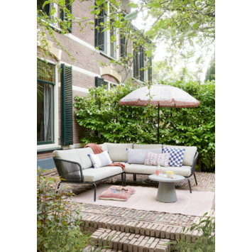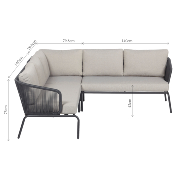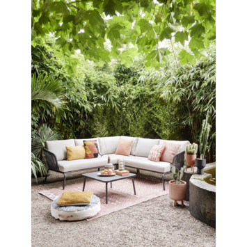 - Set bestaat uit een hoekloungebank, zit- en rugkussens