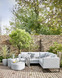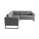 Warme zomeravonden worden een feest met deze loungeset Ruby. Deze stijlvolle hoekbank is geschikt voor ruim vijf personen. Het frame is gemaakt van onderhoudsvriendelijk en duurzaam aluminium en kunststof. De poedercoating zorgt ervoor dat het frame is beschermd tegen roest en weersinvloeden. De bank en kussens zijn grijs en het onderstel heeft een zwarte kleur. De extra dikke rug- en zitkussens zijn kenmerkend voor de loungeset. Ruby heeft een luxe uitstraling en verhoogt zitcomfort. Dat worden heerlijk lange zomeravonden met deze loungeset Ruby.