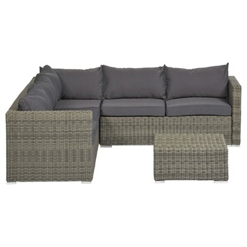 De loungeset Stockholm is een moderne loungeset die zitplaats biedt voor 5 personen. De set kenmerkt zicht door haar tijdloze en moderne design. Doordat de set is gemaakt van kunststof met een metalen onderstel, is het een zeer onderhoudsvriendelijke en duurzame keuze. De set is uitgevoerd met luxe grijze kussens en een vierkante salontafel.