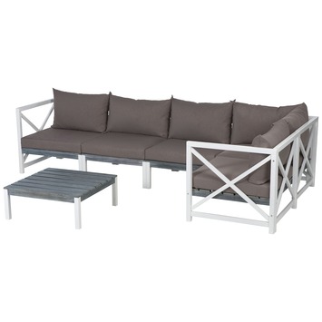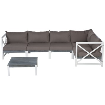 De loungeset Texel 6-delig is een sfeervolle grijs/witte loungeset. Doordat de set bestaat uit losse elementen, kan ieder gewenste opstelling gemaakt worden. De loungeset is inclusief salontafel en door het los te verkrijgen lounge element Texel kan de set uitgebreid worden. Doordat hout een natuurproduct is, zijn haar- en krimpscheuren, kleurverschillen en verkleuringen inherent. De loungeset Texel 6-delig is dus ideaal als je zelf wilt bepalen hoe jouw loungeset eruit ziet.