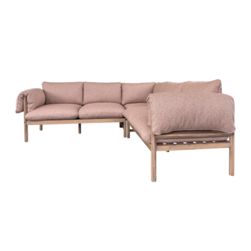 De bank heeft een zithoogte van 47 cm, zitbreedte 144 cm en zitdiepte 74,5 cm. Het hoekelement heeft dezelfde zithoogte, een breedte van 74,5 cm en een zitdiepte van 74,5 cm. Het houten frame geeft stevigheid en de volle kussens bieden comfort voor urenlang gebruik.